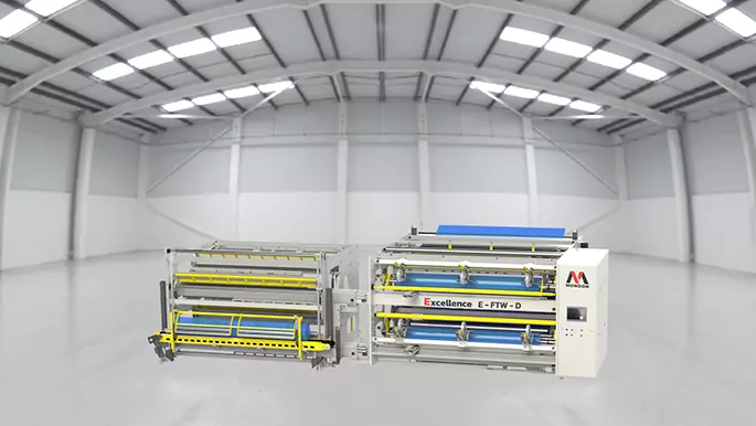 E-FTW-2 is a fully automatic winder in line with the manufacturing process. This FTW allows continuous winding, with an automatic roll change : cores are loaded automatically from a core magazine and finished rolls are removed from the winder.