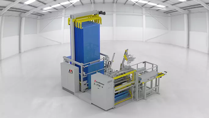 The E-FTW-4 fully automatic winder offers continuous winding. Thanks to turret technology, the cores are automatically loaded from a core magazine and the finished reels are removed from the winder.